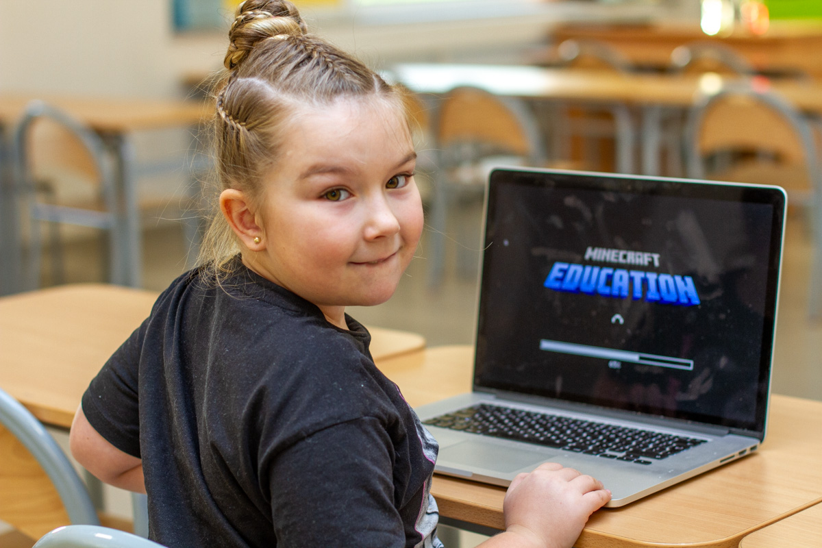 W czasie zajęć dzieci poruszają się w świecie Minecraft. Przed nimi stoją konkretne zadania do wykonania, a ich realizacja możliwa jest dzięki wprowadzeniu odpowiedniego kodu programistycznego.